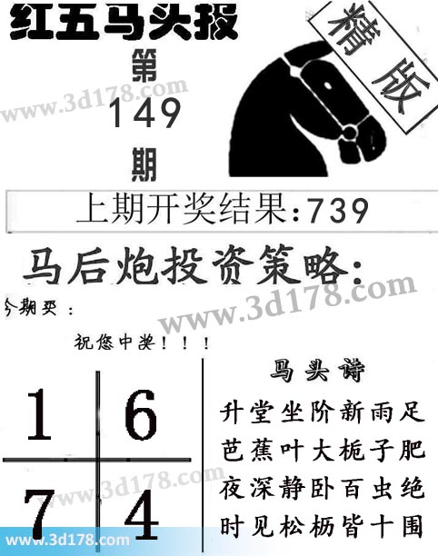 3d第2017149期红五马头报本期马头诗详解:上期开奖号码:739