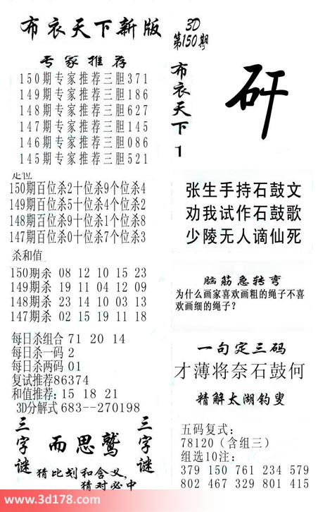 本期3d之家布衣图库3d布衣天下新版详解:定位杀号推荐: