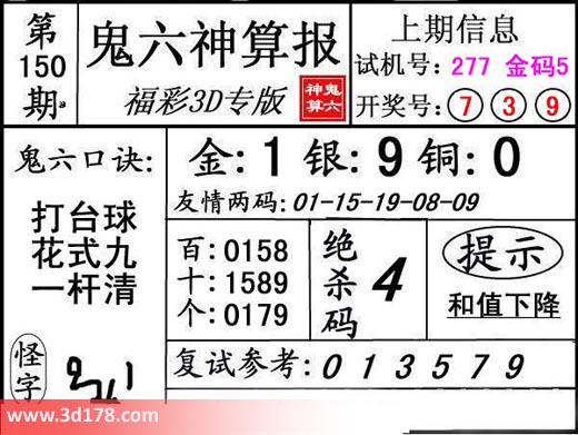 3d第17150期鬼六神算报为您推荐鬼六口诀: