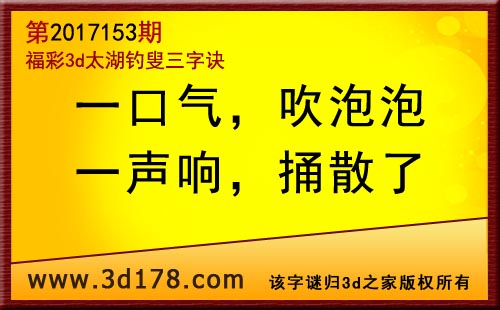 3d第17153期太湖字谜:一口气,吹泡泡,一声响,捅散了