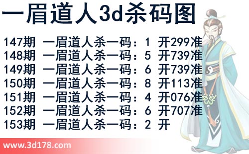 该一眉道人3d杀码图由3d之家3d图库频道原创,仅供彩民参考,温馨提供。