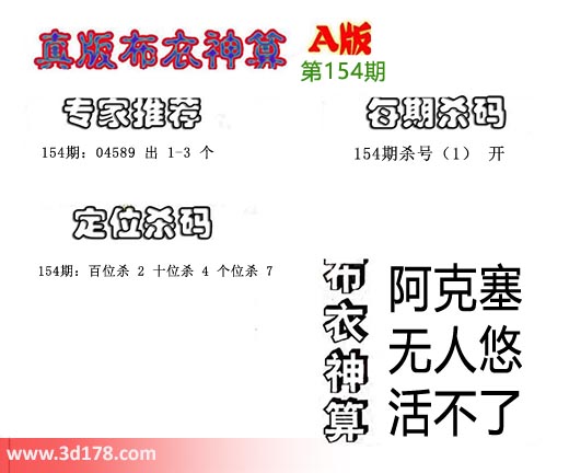 3d布衣神算第154期定位杀码: