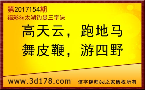 3d第17154期太湖字谜:高天云,跑地马,舞皮鞭,游四野