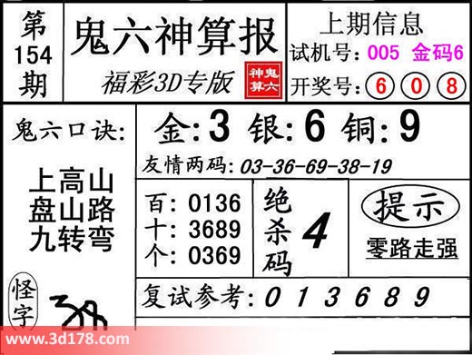 3d第17154期鬼六神算报为您推荐鬼六口诀:
