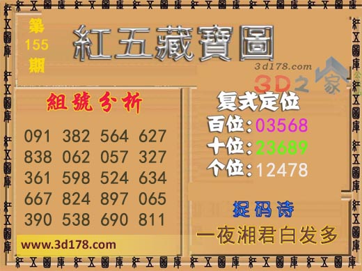 红五藏宝图3d第2017155期: