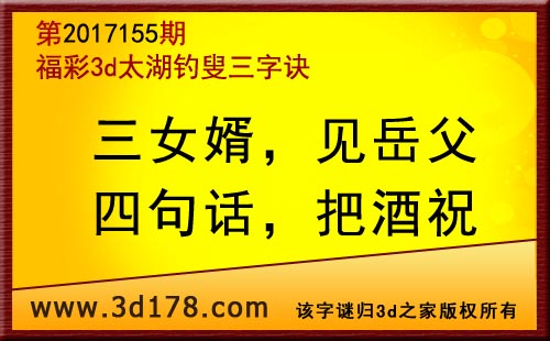 3d第2017155期太湖图库解字谜:三女婿,见岳父