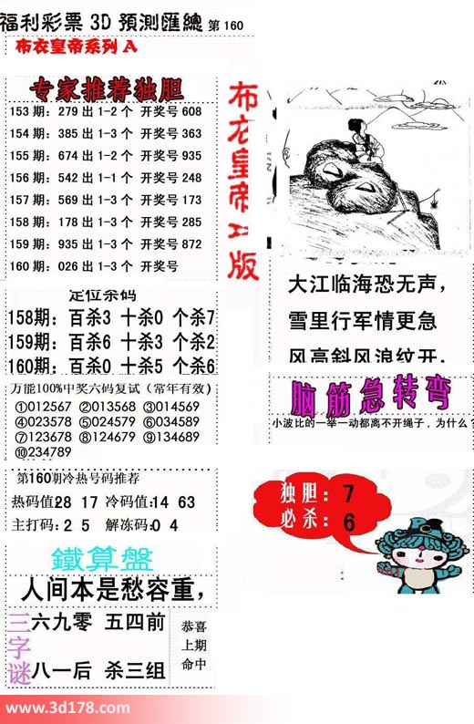 福彩3d第2017160期布衣皇帝A版布衣专家独家推荐: