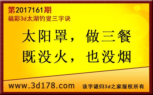 3d第17161期太湖字谜:太阳罩,做三餐,既没火,也没烟