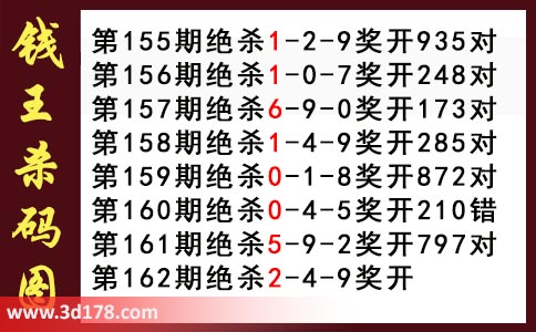 近期3d钱王杀码具体详情: