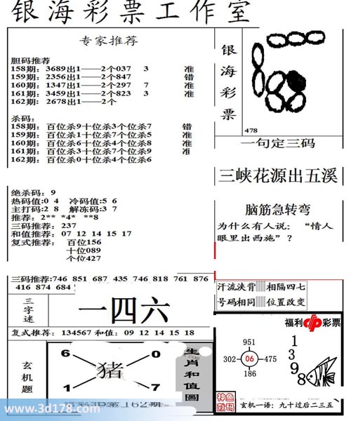 3d第2017162期银海布衣图详解:号码推荐: