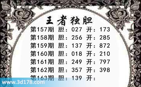 3d之家第163期王者独胆图推荐胆码: