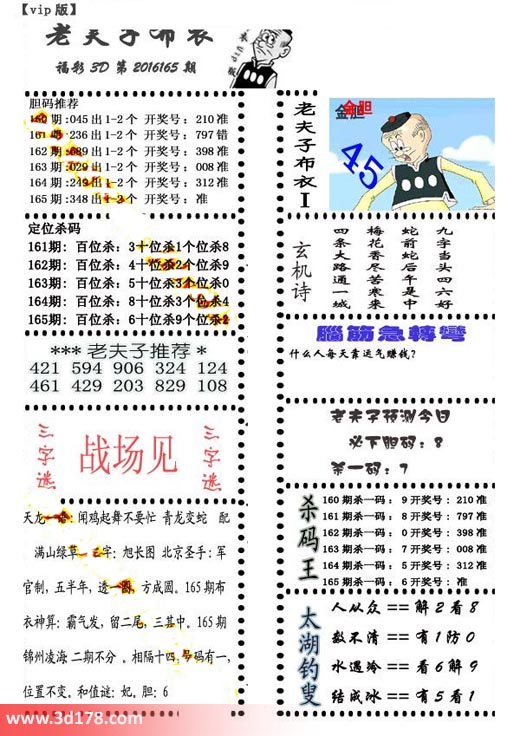福彩3d第2017165期老夫子布衣图详情:165期:348 出1-2个 开奖号: