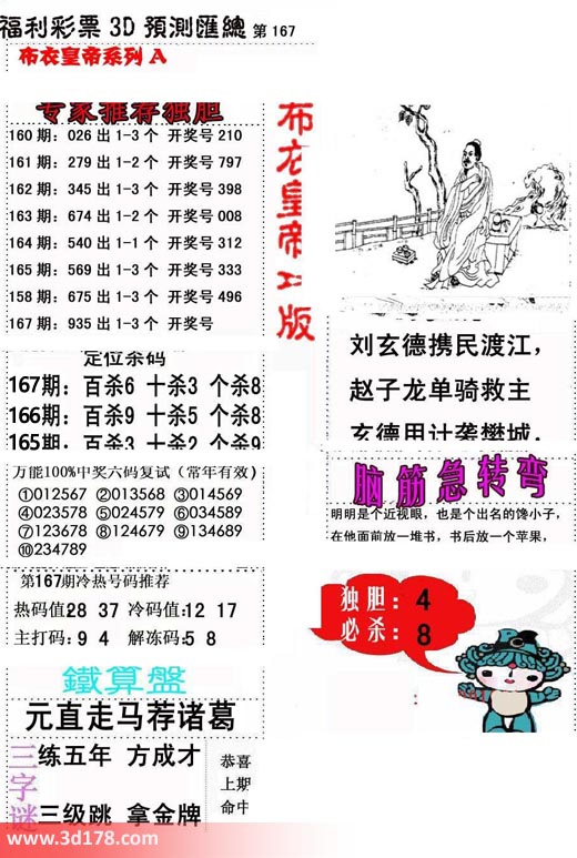 福彩3d第2017167期布衣皇帝A版布衣专家独家推荐: