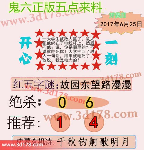 福彩3d第2017169期鬼六五点来料: