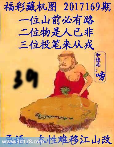 福彩3d第2017169期正版藏机图详解: