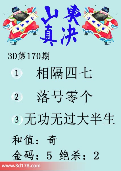 3d第2017170期山东真诀图金码推荐:1、相隔四七
