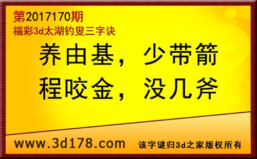 3d第17170期太湖字谜:养由基,少带箭,程咬金,没几斧