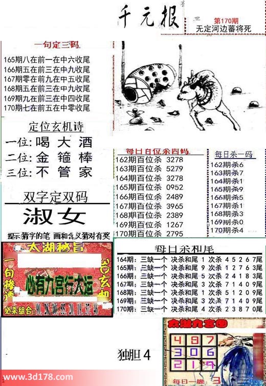 福彩3d布衣图库布衣千元报第2017170期定位玄机诗: