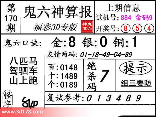3d第17170期鬼六神算报为您推荐鬼六口诀:
