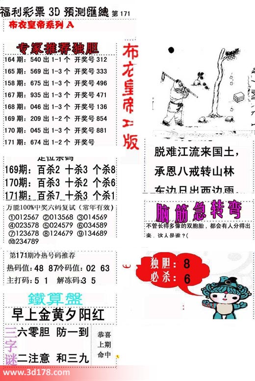 福彩3d第2017171期布衣皇帝A版布衣专家独家推荐: