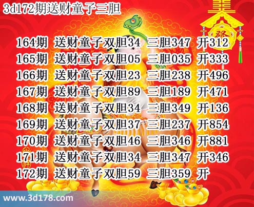 下面我们一起来回顾一下3d之家胆码图送财童子三胆近期推荐详情: