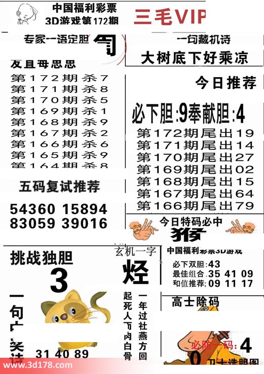 3d第2017172期三毛VIP详解:一句藏机诗:大树底下好乘凉