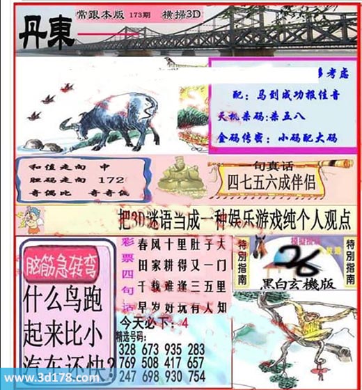 3d之家第2017173期丹东快报图:3d第2017173期丹东快报图详解:超级配:马到成功报佳音天机杀码:杀五八和值走向:中胆码走向:172奇偶比:2:1金码传密:小码配大码精选号码:328 673 935 283 769 508 417 657 247 698 930 754脑筋急转弯:什么鸟跑起来比小汽车还快?该丹东图库由3d之家3d图库频道原创,仅供彩民参考,温馨提供。