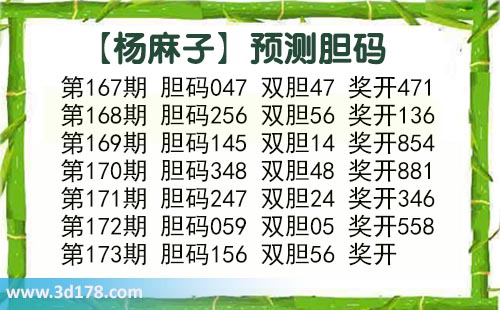 3d第2017173期杨麻子胆码推荐: