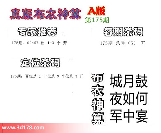 175期:百位杀 1 十位杀 9 个位杀 3 开