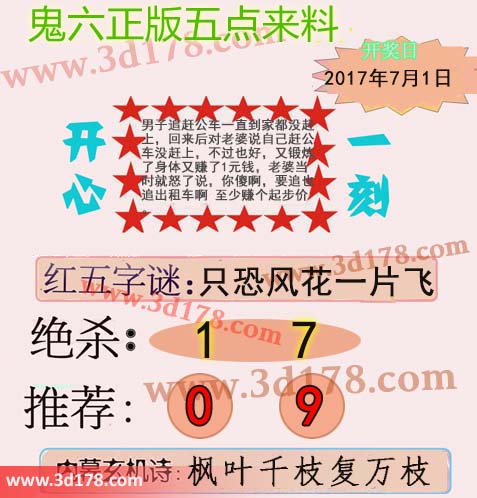 福彩3d第2017175期鬼六五点来料: