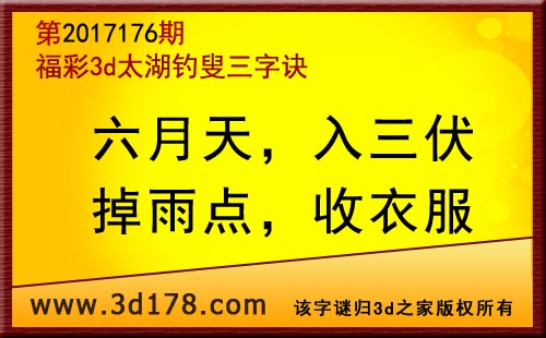 3d第17176期太湖字谜:六月天,入三伏,掉雨点,收衣服