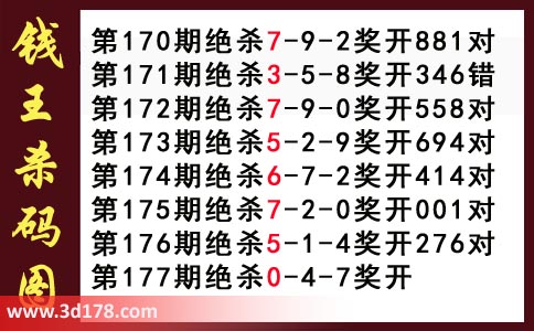 近期3d钱王杀码具体详情: