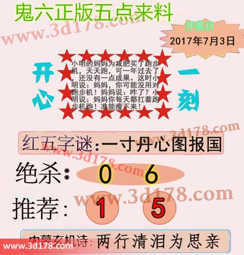 3d鬼六五点来料详解第2017177期:字谜:一寸丹心图报国