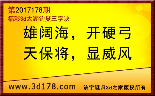 3d第17178期太湖字谜:雄阔海,开硬弓,天保将,显威风