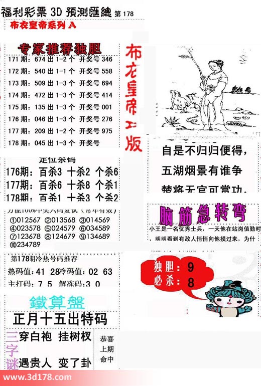 福彩3d第2017178期布衣皇帝A版布衣专家独家推荐: