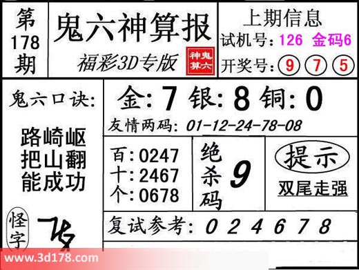 3d第17178期鬼六神算报为您推荐鬼六口诀: