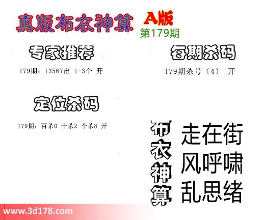 179期:百位杀 0 十位杀 2 个位杀 8 开