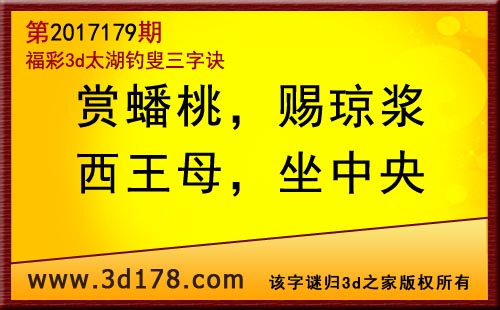 3d第17179期太湖字谜:赏蟠桃,赐琼浆,西王母,坐中央