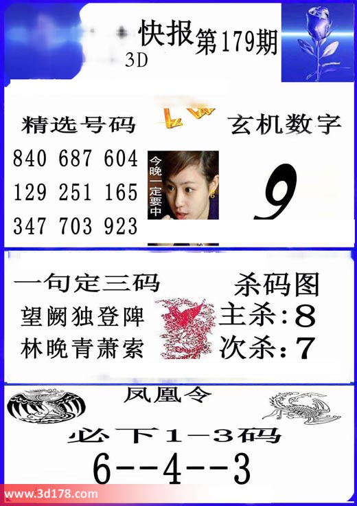 3d第2017179期凤凰快报内容解析:玄机数字:9