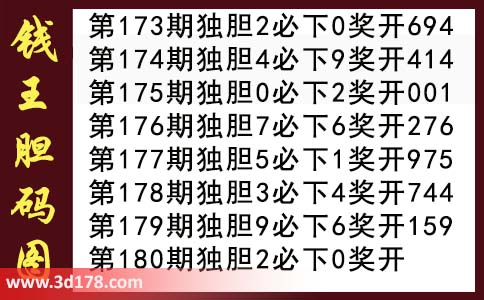 胆码图库3d第2017180期钱王胆码图: