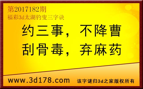 3d第17182期太湖字谜:约三事,不降曹,刮骨毒,弃麻药