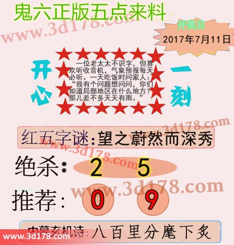 福彩3d第2017185期鬼六五点来料: