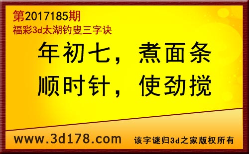 3d第17185期太湖字谜:年初七,煮面条,顺时针,使劲搅