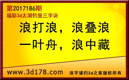 3d第17186期太湖字谜:浪打浪,浪叠浪,一叶舟,浪中藏
