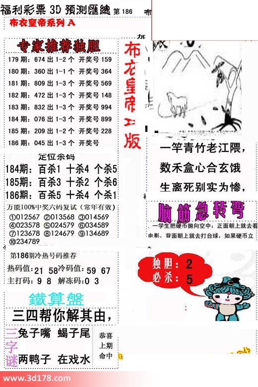 福彩3d第2017186期布衣皇帝A版布衣专家独家推荐: