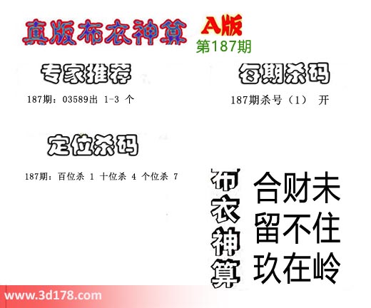 3d布衣神算第187期定位杀码: