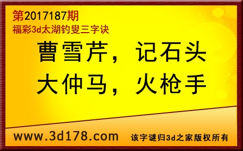 3d第17187期太湖字谜:曹雪芹,记石头,大仲马,火枪手