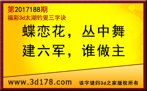 3d第17188期太湖字谜:蝶恋花,丛中舞,建六军,谁做主