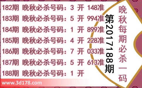 182期 晚秋必杀号码:3 开 148准