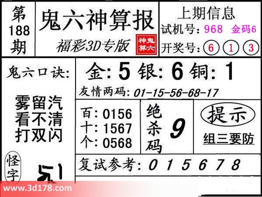 3d第17188期鬼六神算报为您推荐鬼六口诀: